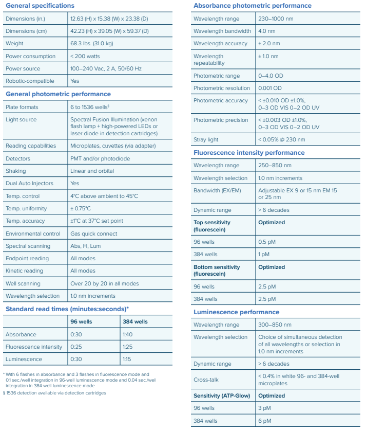 SpectraMax® i3x Multi-Mode Microplate Reader는 포함된 Absorbance, 형광, 발광검출법 모드를 사용하여 광범위한 필수 세포 기반, 생화학적 Assay를 수행할 수 있습니다. SpectraMax® MiniMax™ 300 Imaging Cytometer, 업계를 선도하는 SoftMax® Pro Software, 사용자 구성 가능한 측정 모듈을 갖춘 이 독특한 리더기는 사용자가 언제든지 옵션 측정 모듈을 추가하여 판독기의 기능을 확장하고 하나의 Microplate Reader에서 Cellular Pathway와 단백질 발현을 탐색할 수 있도록 해줍니다. 여기에는 AlphaScreen/AlphaLisa, Time-Resolved Fluorescence, TR-FRET/HTRF, Fluorescence Polarization, Dual Injector, Western Blot Detection이 포함됩니다. Transmitted Light와 형광 채널을 사용하면 비염색 이미지나 세포 염색시약을 사용하여 세포독성, 세포 생장, 표현형 변화를 더 잘 볼 수 있습니다.